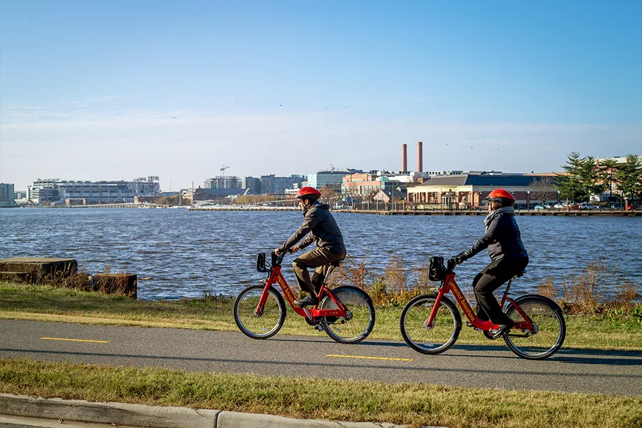 There are Bikeshare bicycles available at 11 stations throughout Navy Yard, making transportation easier for the 20% of neighborhood workforce who walk or bike to work.