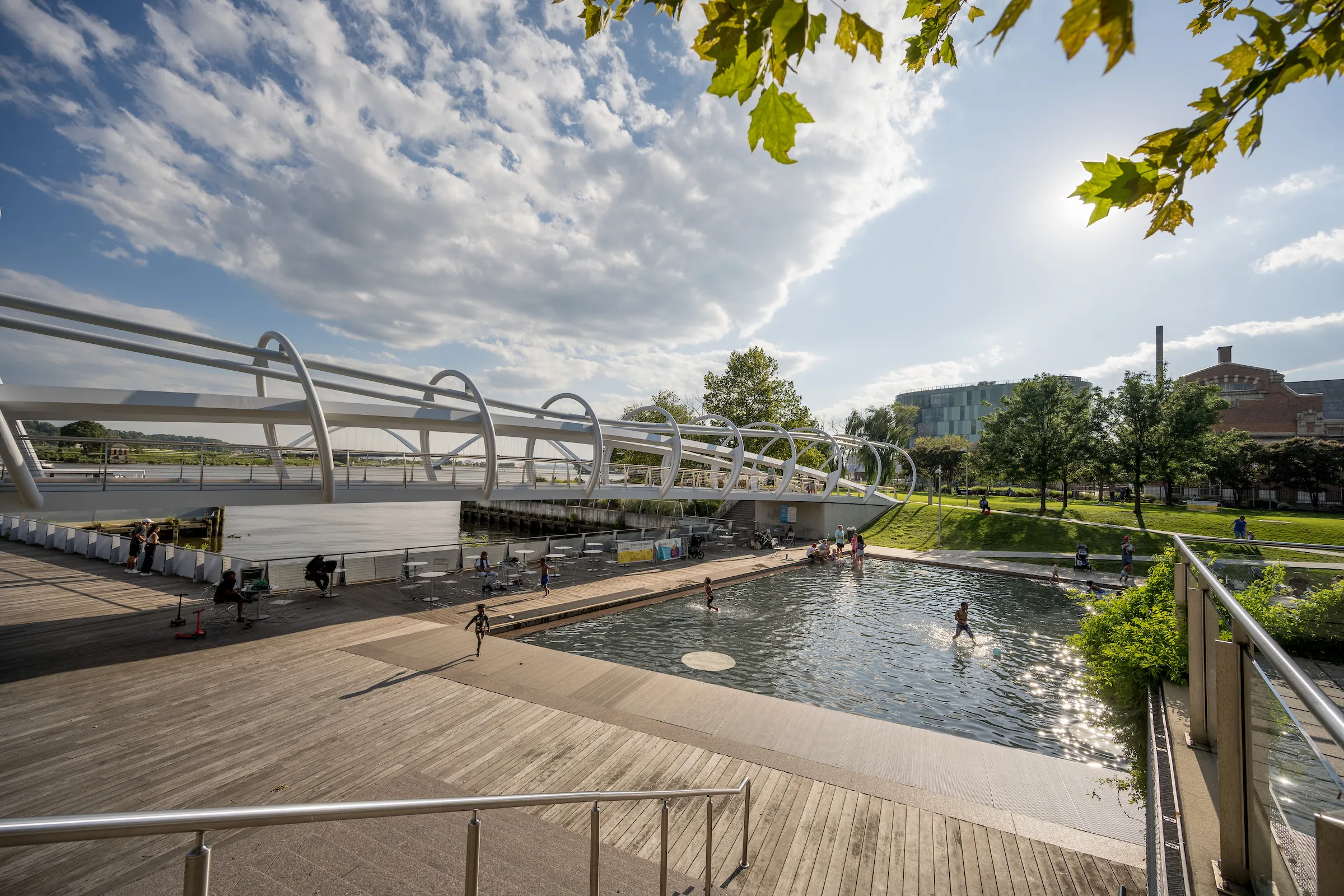 Canal Park is a 3 acre neighborhood-centric park that opened in 2012 as a model of sustainable design for an outdoor space. The park is home to seasonal events, dancing fountains in the warmer months, and ice skating in the winter.